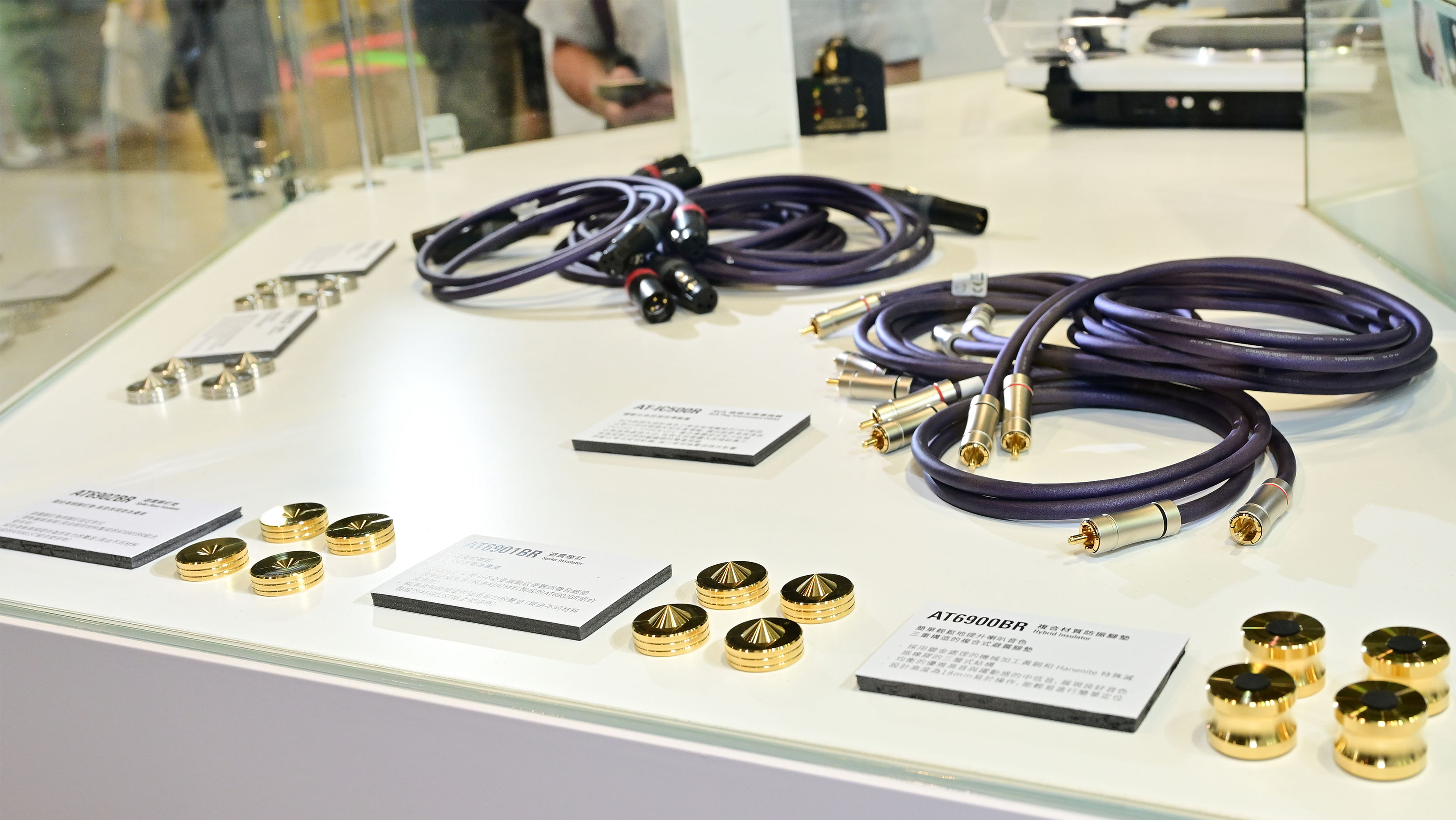 鐵三角的唱盤清潔用品和其他唱盤配件展示區,分別有:
