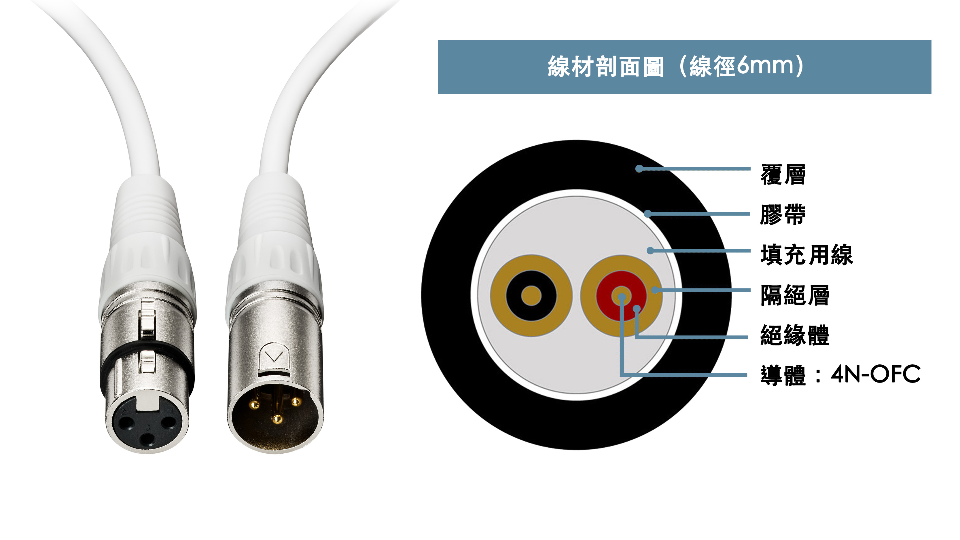 導體採用高純度無氧銅(4N-OFC),具備卓越的導電性能,能有效降低訊號損耗,準確傳遞每一個聲音細節,忠實還原原始音色,呈現細膩真實的音質表現。