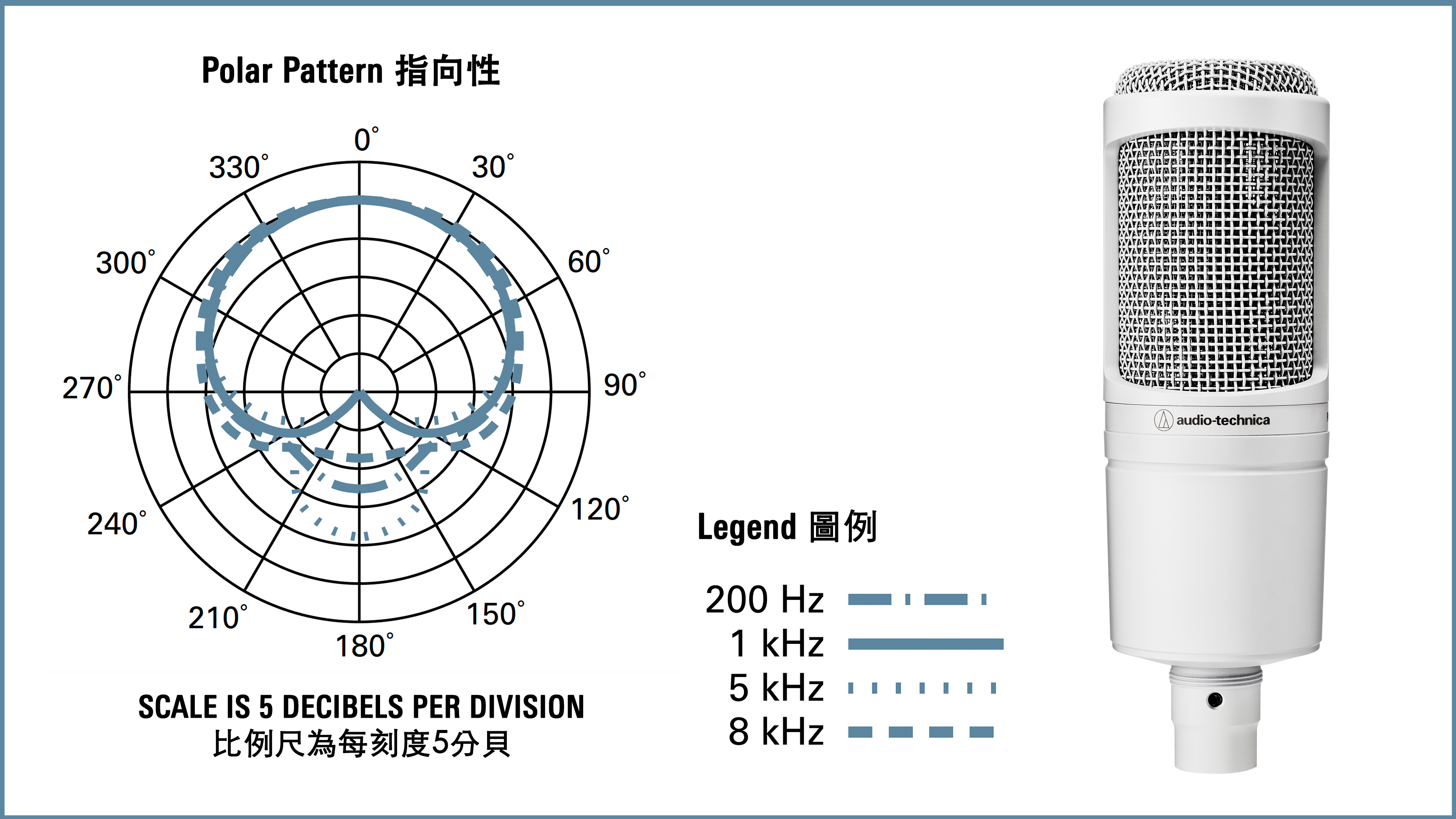 - AT2020 CWH – 心形指向電容型側邊收音咪高峰