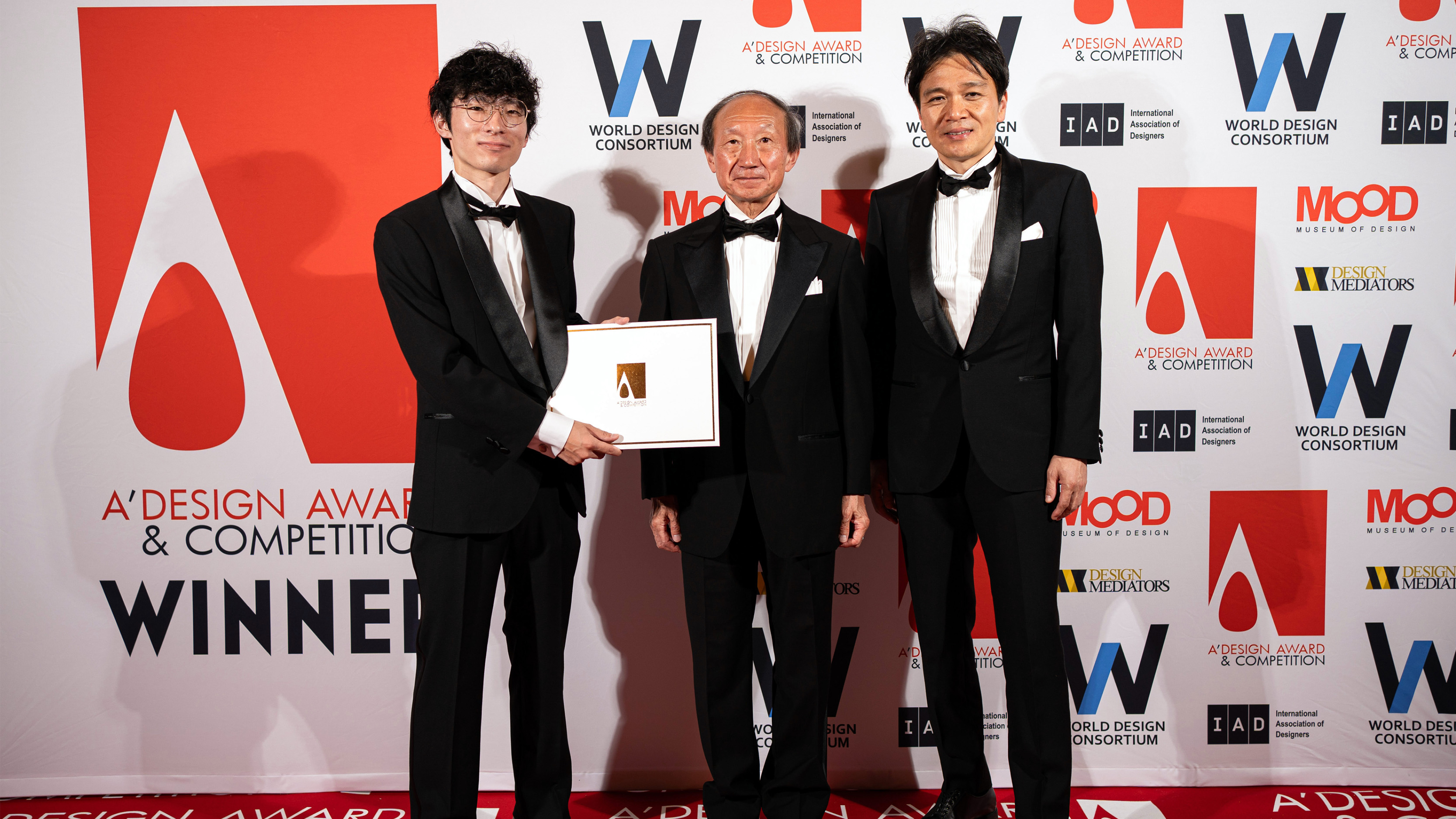 頒獎典禮盛大舉行,來自世界各地的設計師與嘉賓齊聚一堂,共同見證榮耀時刻。開場儀式結束後,典禮正式展開,各獲獎者依序登台領取獎座。鐵三角社長松下和雄先生作為「白金獎」得主身分登台,親手接下象徵殊榮的獎盃。