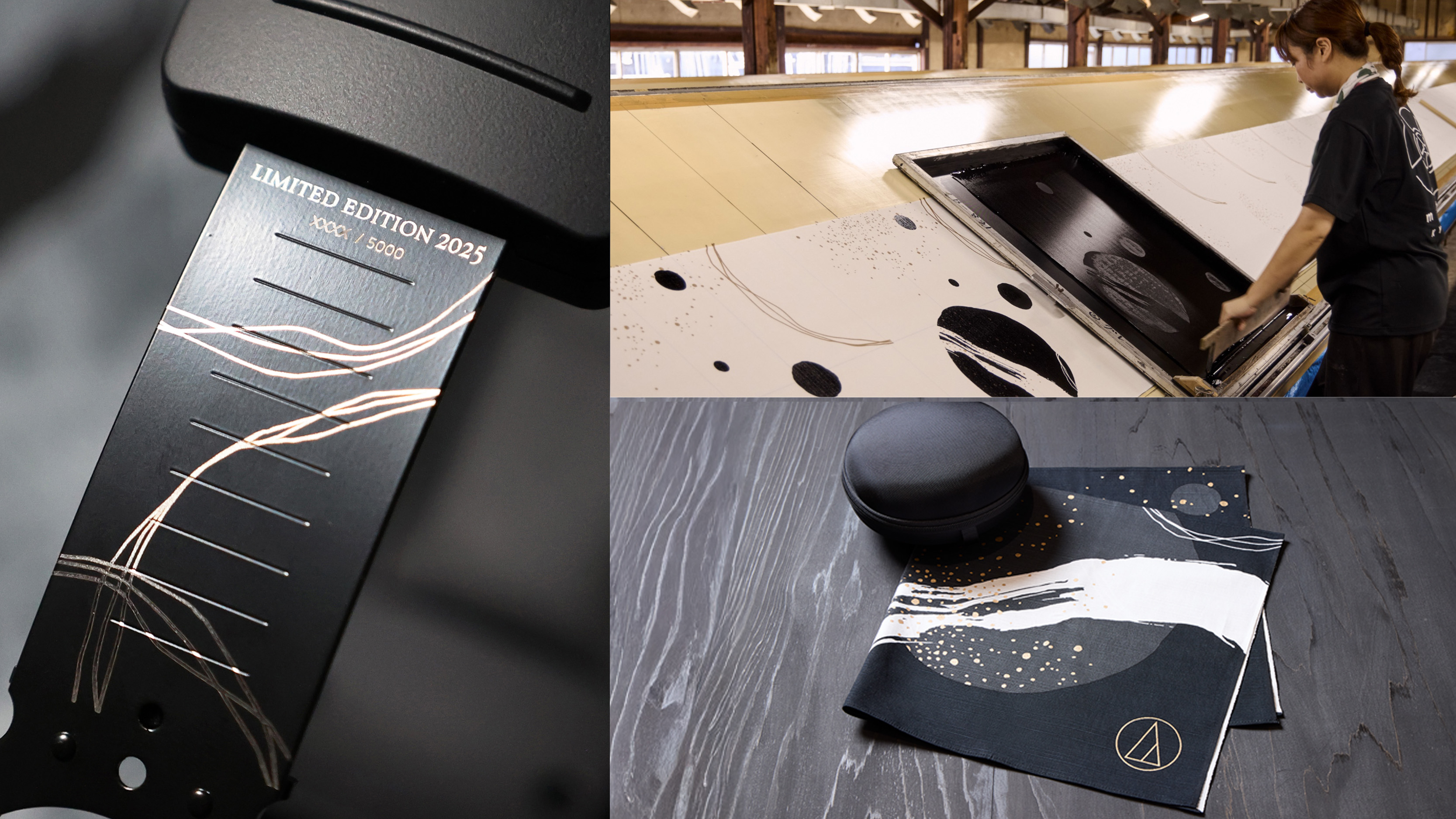 每副耳機皆刻有序列號,購買此限量版耳機的粉絲,還有機會獲得專屬ENSO配件套組,內含耳機收納盒與特製風呂敷布。Audio-Technica此次特別與位於京都、擁有超過110年歷史的染布工坊「