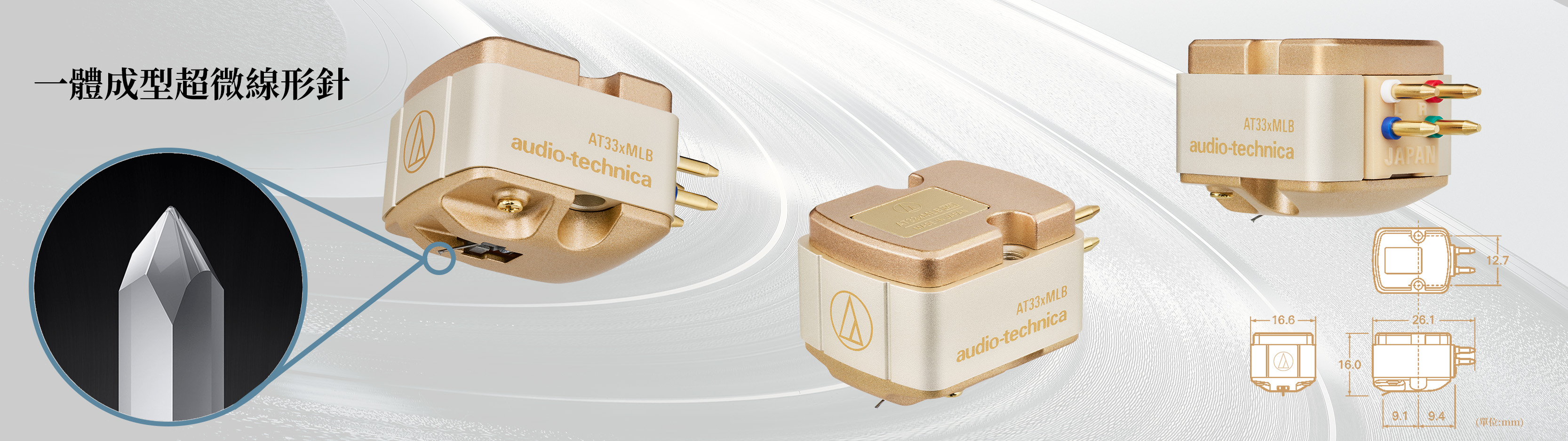AT33xMLB 採用小曲率半徑的一體成型微線型針尖,這種針尖形狀能夠更準確地追蹤唱片溝槽,即使在唱片邊緣也能維持優秀的音質和解析力,帶來自然流暢的高頻延伸與豐富細節。